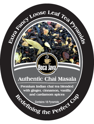 A traditional blend of premium Indian tea with ginger, cinnamon, vanilla and cardamom spices, packed inside our exclusive Boca Tea Pyramids, produces the maximum amount of flavor and aroma in this delicious beverage. Chai tea is deeply steeped in ancient Indian history. Chai was originally prepared for Indian royalty, and Authentic Chai Masala offers a sweet, rich tea experience that will make you feel like royalty! -- 18 count
