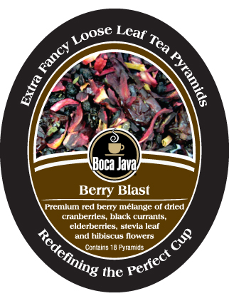 Berry Lovers rejoice! Finally a tart, naturally caffeine free berry herbal tea. Premium red berry melange of dried cranberries, black currants, elderberries, stevia leaf and hibiscus flowers packed inside our exclusive Boca Tea Pyramids.